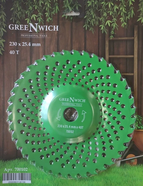 Ніж для тримера GreeNwich 700102 230 мм 40Т Победіт Зелений