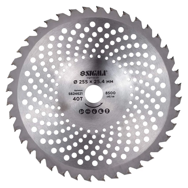Ніж для тримера Sigma з твердосплавними напайками 255x25.4мм 40Т (5624491)