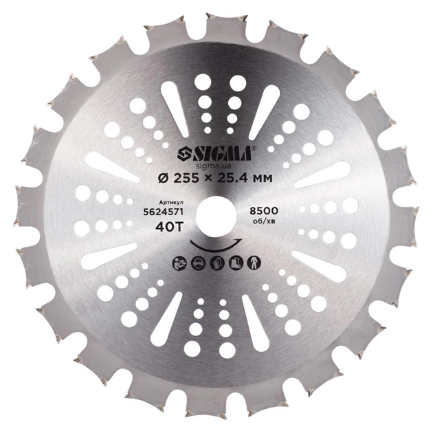 Ніж для тримера Sigma з твердосплавними напайками 255x25.4мм 40т двосторонній (5624571)