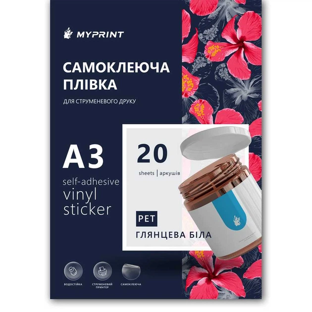 Самоклеюча плівка для струменевого друку My Print PET водостійка, А3, 20 листів, глянцева біла (11055)