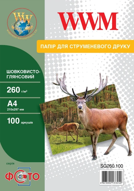 Фотопапір WWM шовковисто-глянсовий 260г/м кв, A4, 100л (SG260.100)