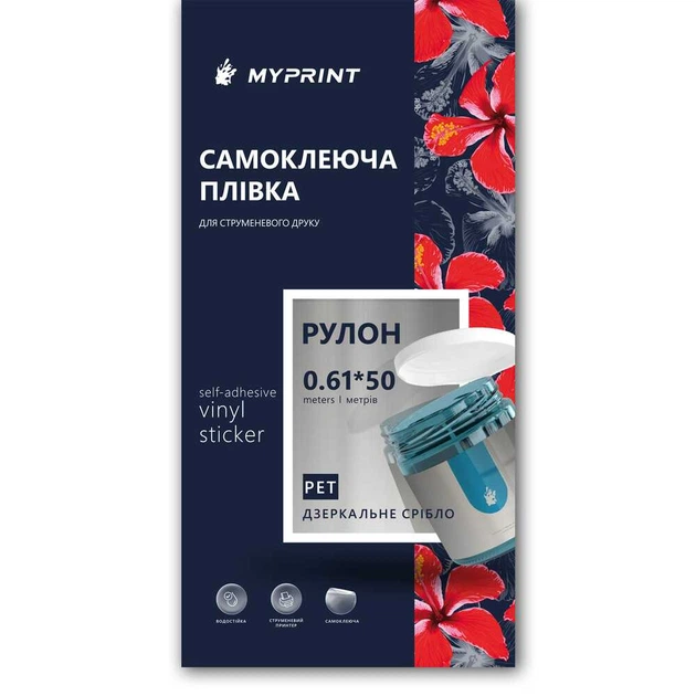 Самоклеюча плівка для струменевого друку My Print PET водостійка, рулон 0,61*50 м, дзеркальне срібло (10986)