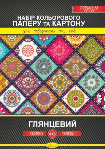 Набір кольорового картону та паперу А4 (односторонній), 8+8 аркушів, глянсовий premium