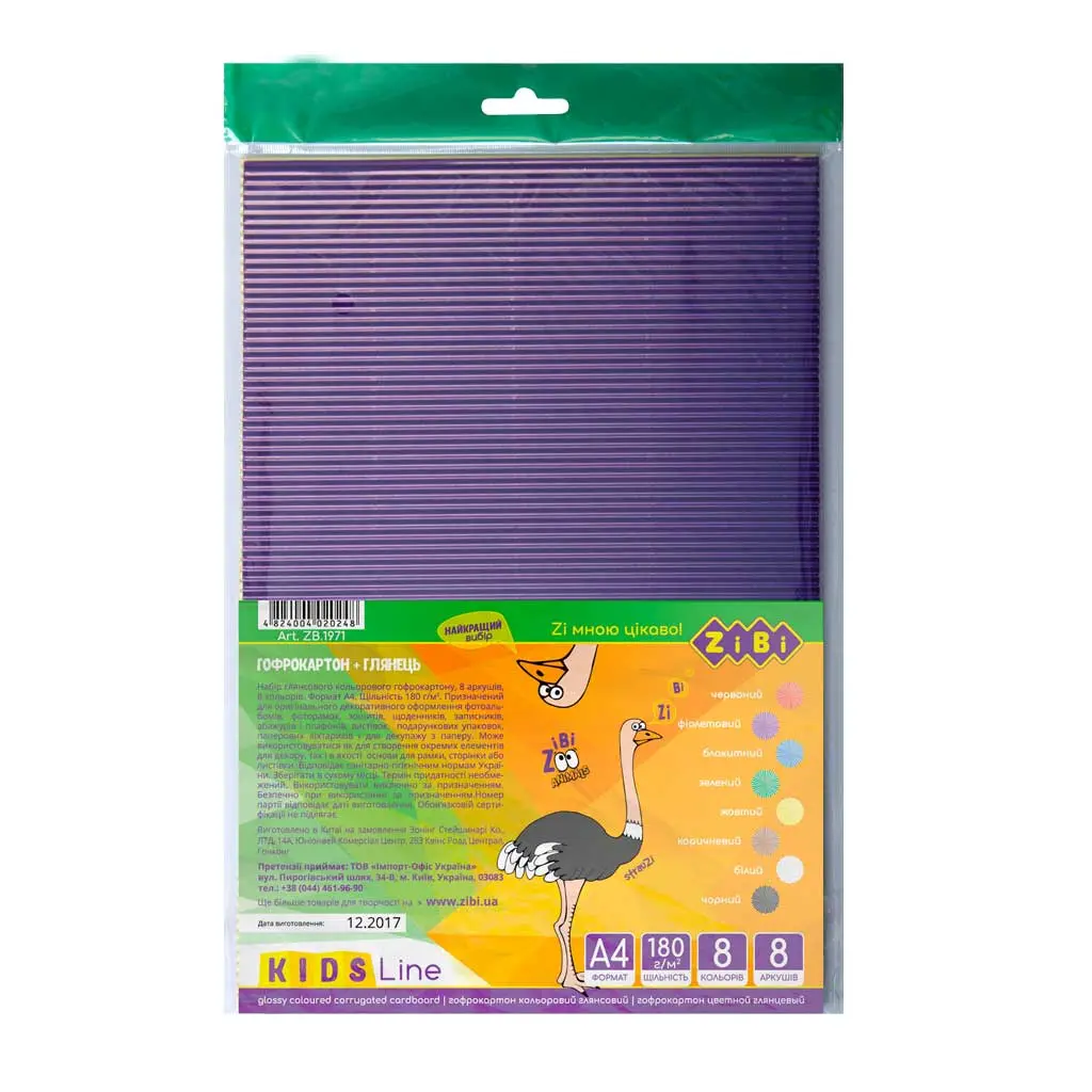 Гофрокартон глянцевий А4, 8 кольорів, 8 аркушів
