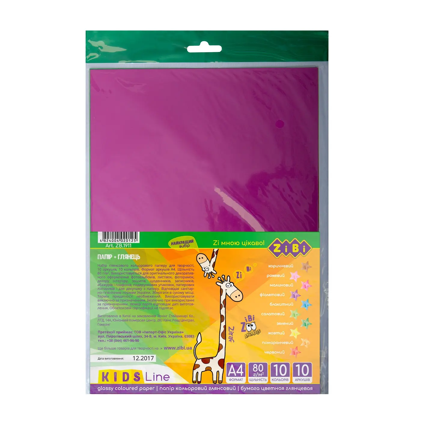 Папір кольоровий глянцевий А4, 10 кольорів, 10 аркушів