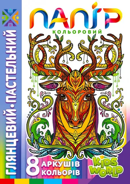 Папір односторонній глянцевий пастельний, 210x297 мм, 8 аркушів, 22109, на скобі, 2 шт. в упаковці