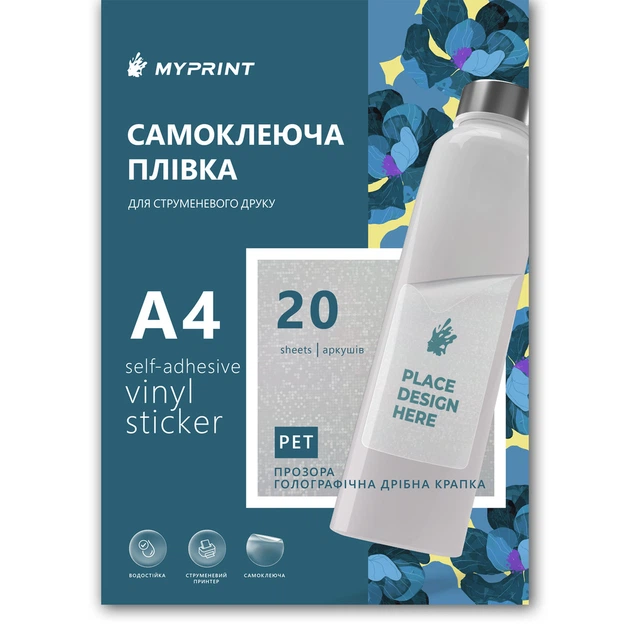 Самоклеюча плівка для струменевого друку My Print PET Fine Dot водостійка, А4, 20 листів, прозора голографічна дрібна крапка
