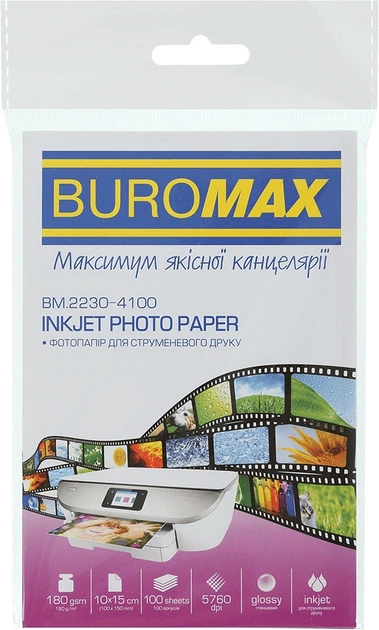 Фотопапір Buromax глянцевий 180г/м2 10х15см, 100л (BM.2230-4100)