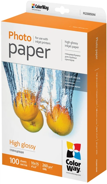 Фотопапір ColorWay глянцевий 260г/м 10x15 100 л (PG2601004R)