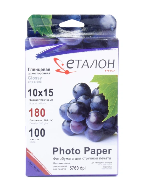Фотопапір глянцевий "Etalon" 180g A6 100 аркушів для струменевого друку фотографій та інших друкованих проектів
