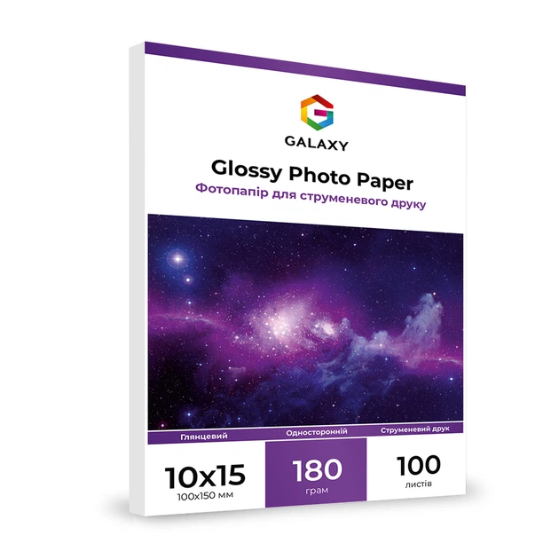 Глянцевий фотопапір Galaxy 10x15 (100л) 180г/м2 для принтера GAL-A6HG180-100
