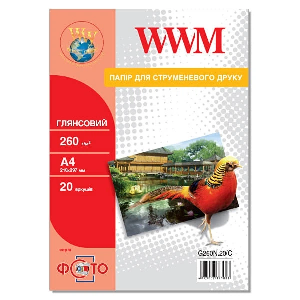 Фотопапір WWM глянсовий 260г/м кв, 10см x 15см, 20л (G260N.F20/C)