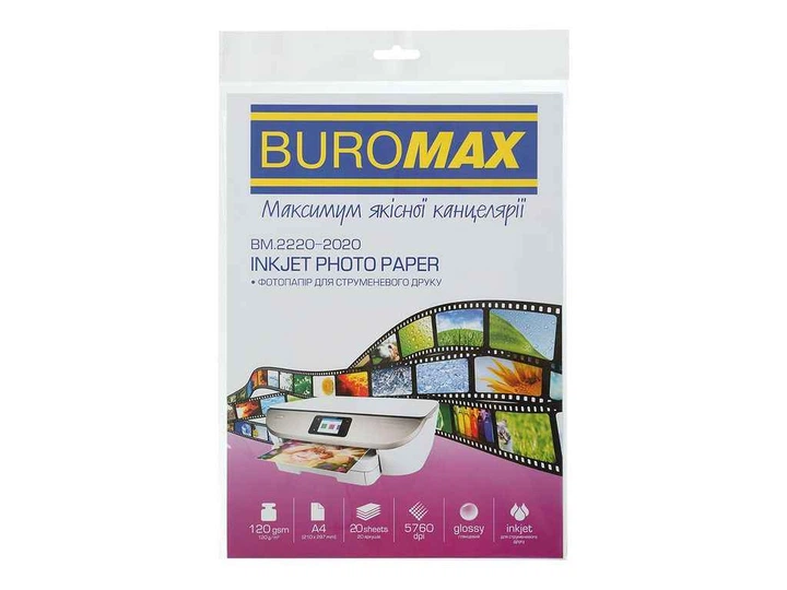 Фотопапір Buromax глянцевий 120г/м2 А4, 20л (BM.2220-2020)