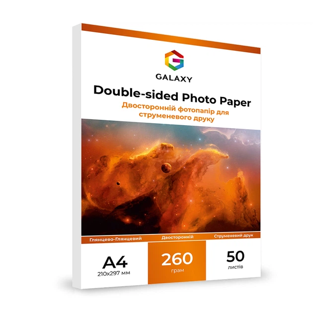 Фотопапір глянцевий двосторонній глянець-глянець A4 (50л) 260г/м2 Galaxy для принтера