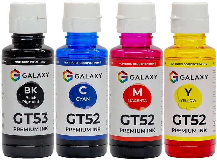 Комплект чорнила Galaxy GT52/GT53 BP/C/M/Y 100 мл 4 шт Різнокольоровий (10505)