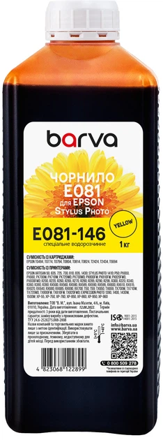 Чорнило Barva для Epson Stylus Photo 1410/P50/R270/T50/TX650 (T0814) 1 кг Yellow (E081-146)