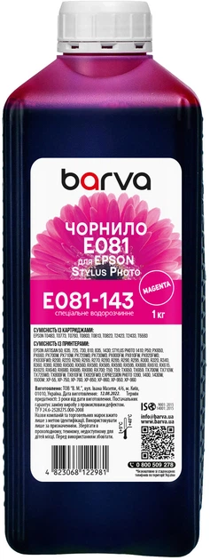 Чорнило Barva для Epson Stylus Photo 1410/P50/R270/T50/TX650 (T0813) 1 кг Magenta (E081-143)