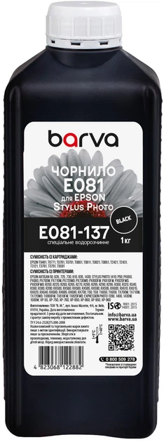 Чорнило Barva для Epson Stylus Photo 1410/P50/R270/T50/TX650 (T0811) 1 кг Black (E081-137)