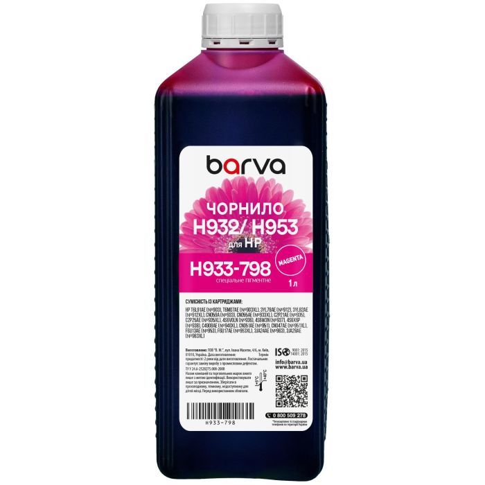 Чорнило Barva HP 933/951/953 1L magenta pigment (H933-798) H933-798