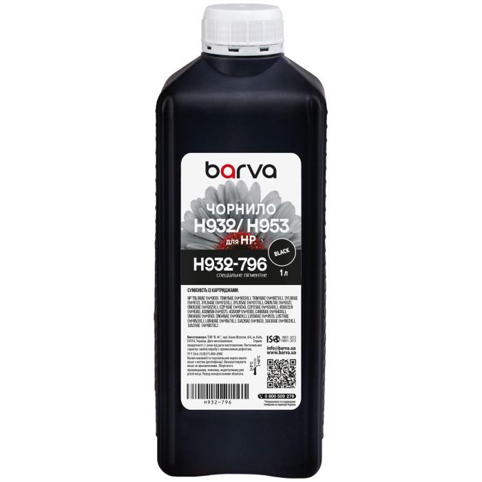 Чорнило Barva HP 932/950/953 1L black, pigment (H932-796) H932-796