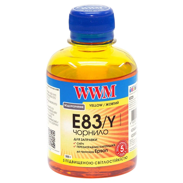 Чорнило світлостійке для Epson Stylus Photo TX700W WWM E83 Yellow 200г E83/Y