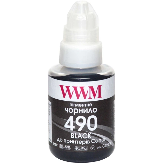 Чорнило для Canon GI-590M Magenta 1605C001 WWM 490 Black 140г C490BP
