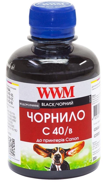 Чорнило для принтера чорне Canon водорозчинне 200 мл WWM C40/B PG-40/50/PGI5Bk/BCI-15 200g Black (C40/B200g)