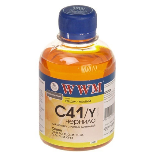 Чорнило WWM C41/Y for Canon CL-41C/CL-51C/CLI-8Y 200g Yellow (C41/Y200g)