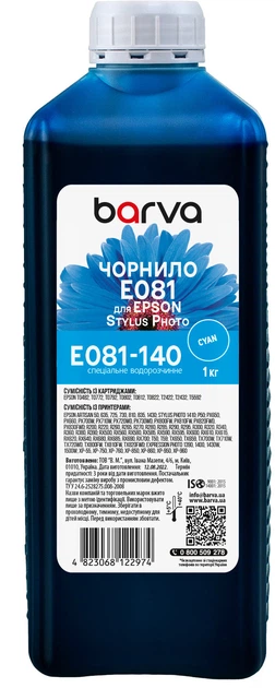 Чорнило Barva для Epson Stylus Photo 1410/P50/R270/T50/TX650 (T0812) 1 кг Cyan (E081-140)