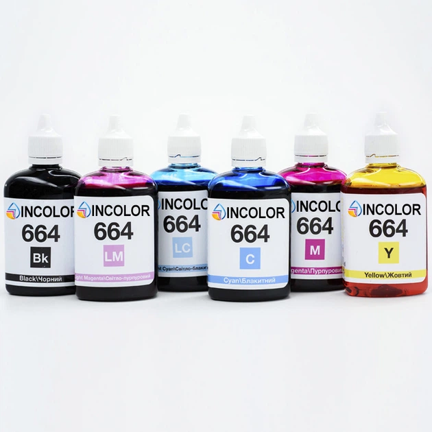 Чорнило для Epson Colorio EP-806AW - комплект чорнил-664 "INCOLOR" (6 x 100 мл) BK/C/M/Y/LC/LM