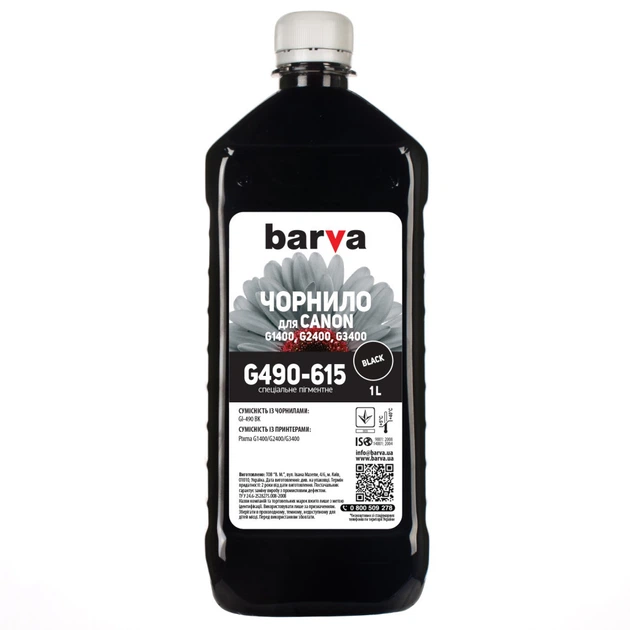 Чорнило Barva CANON GI-490 1л BLACK pigmented (G490-615)