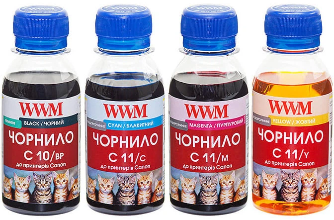 Набір чорнила WWM C10/11 для Canon 4x100 мл BP/C/M/Y (C10/11SET4-2)