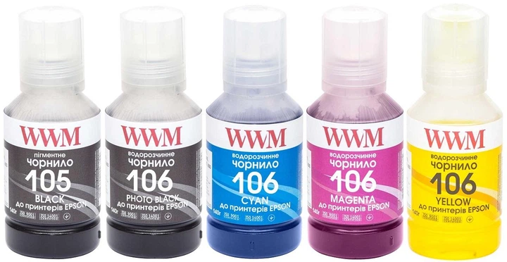 Краска для принтера чорнило водорозчинні та пігментні WWM for Epson L7160/7180 Color 140 мл комплект 5 штук