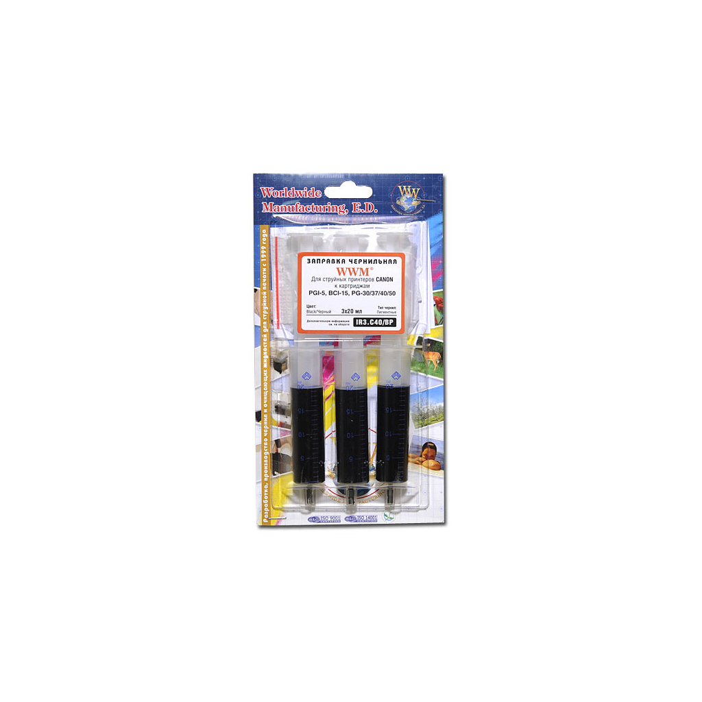 Заправний набір WWM Canon PG-40 / PG-37 (3 x 20 мл) Black Pigmented (IR3.C40 / BP) IR3.C40/BP