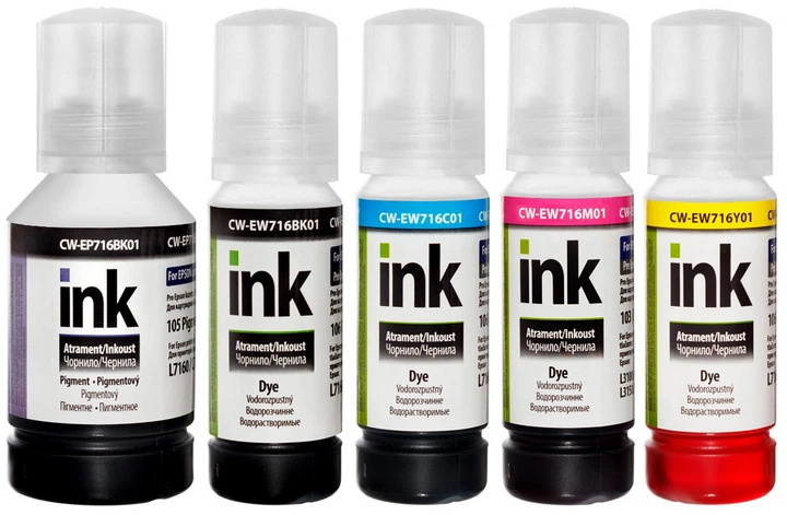 Комплект чорнила ColorWay Epson L7160/7180 (140 мл + 4х70 мл) BKP/BK/С/M/Y (CW-EP716/EW716SET01)