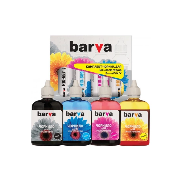 Чорнило Barva HP 10/13/82/88, 4x100 мл BK/C/M/Y (H10-100-MP)