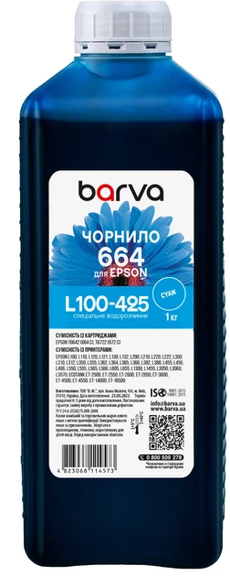 Чорнило Barva для Epson L100/L210/L300/L350/L355 (T6642) 1 кг Cyan (L100-425)