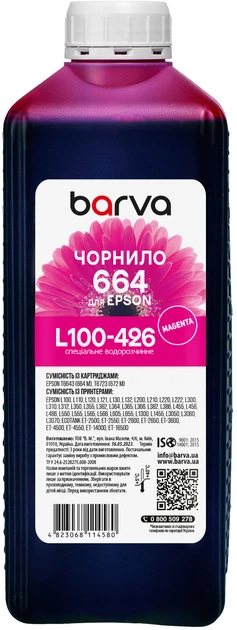 Чорнило Barva для Epson L100/L210/L300/L350/L355 (T6643) 1 кг Magenta (L100-426)