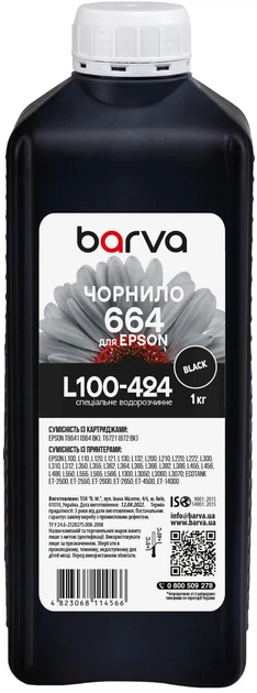 Чорнило Barva для Epson L100/L210/L355/L1300/L3050 (664 BK) 1 кг Black (L100-424)