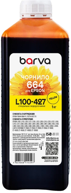 Чорнило Barva для Epson L100/L210/L355/L1300/L3050 (664 Y) 1 кг Yellow (L100-427)