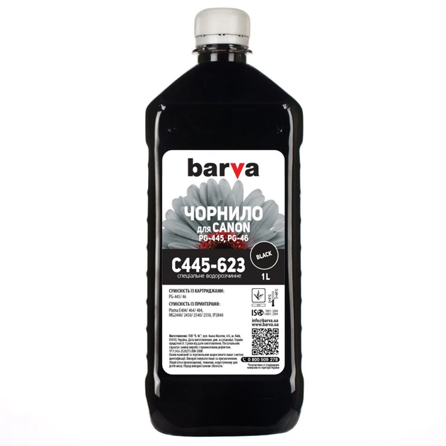 Чорнило Barva CANON PG-445/PG-46 1л BLACK (C445-623)