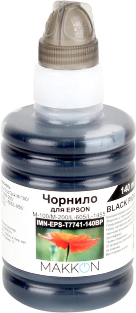 Чорнило Makkon для Epson M-100/M-200/L-605/L-1455 140 мл Black Pigment (IMN-EPS-T7741-140BP)