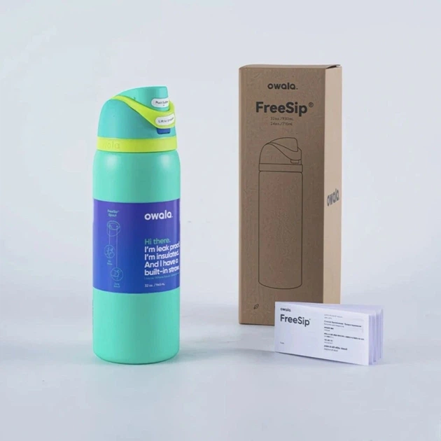 Пляшка термос Owala FreeSip Neon Glow 945 мл з нержавіючої сталі, спортивна з трубочкою