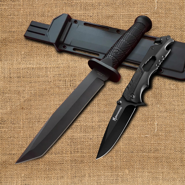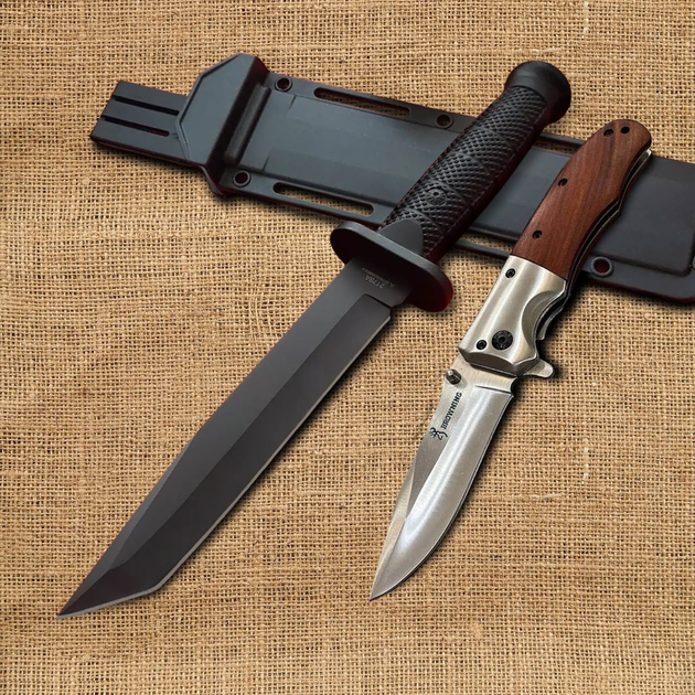 Мисливський нож Антибликовий Tanto 32 см CL 217 + Складаний ніж - Brown (00000X2178Brown)