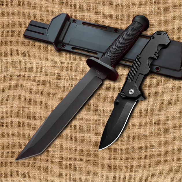 2 в 1 - Мисливський нож Антибликовий Tanto 32 см CL 217 + Складаний ніж F9 Flipper (00000X2178-F9)