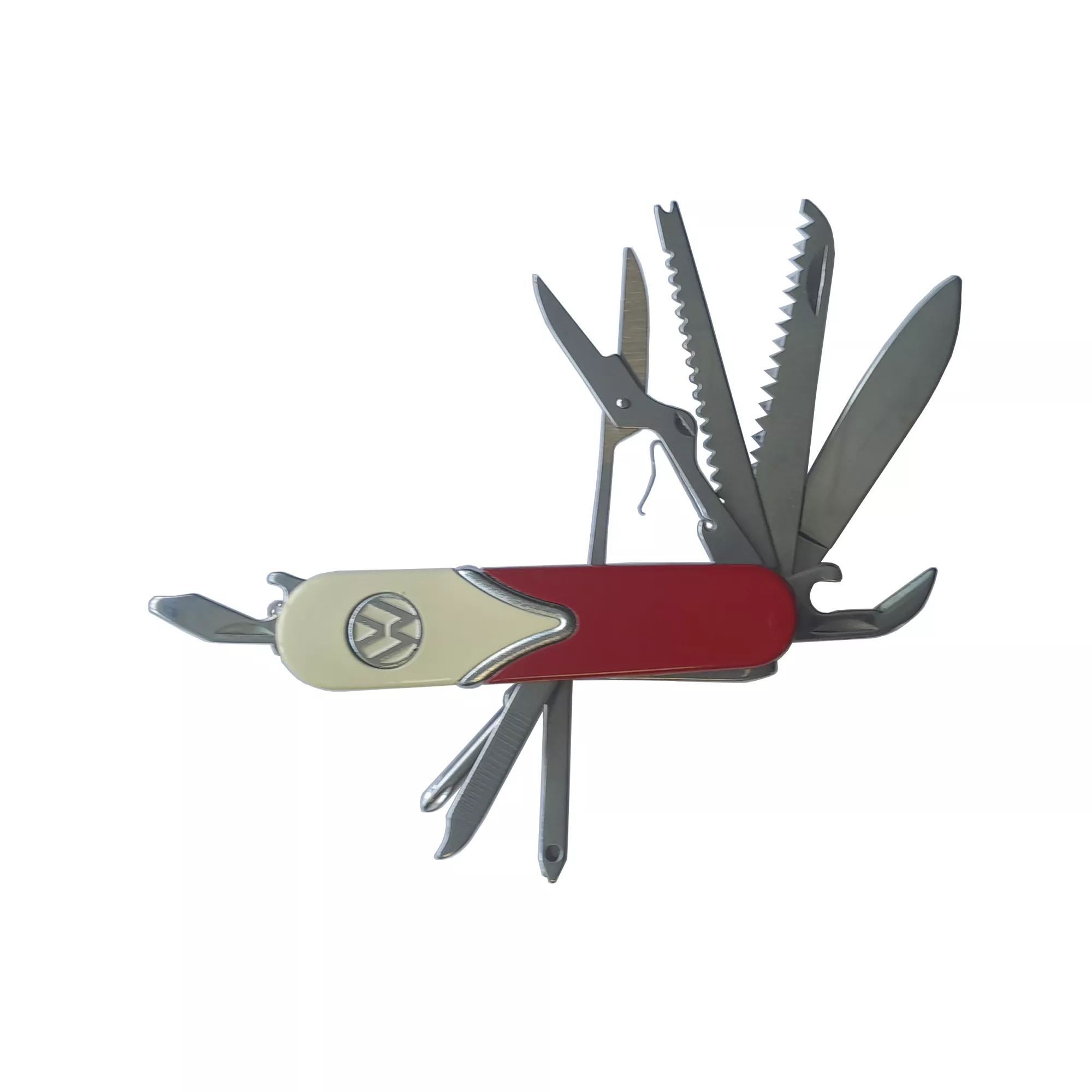 Складной карманный нож с изображением логотипа Volkswagen будет идеальным подарком для поклонников и владельцев этой марки. Нож упакован в подарочную коробку.Нож включает в себя 10 инструментов:- большое лезвие 6 см;- пилка по дереву;- лезвие для чистки рыбы;- ножницы;- консервный нож;- открывалка для бутылок;- пилка для ногтей;- шило;- игла;- отвертка крестовая