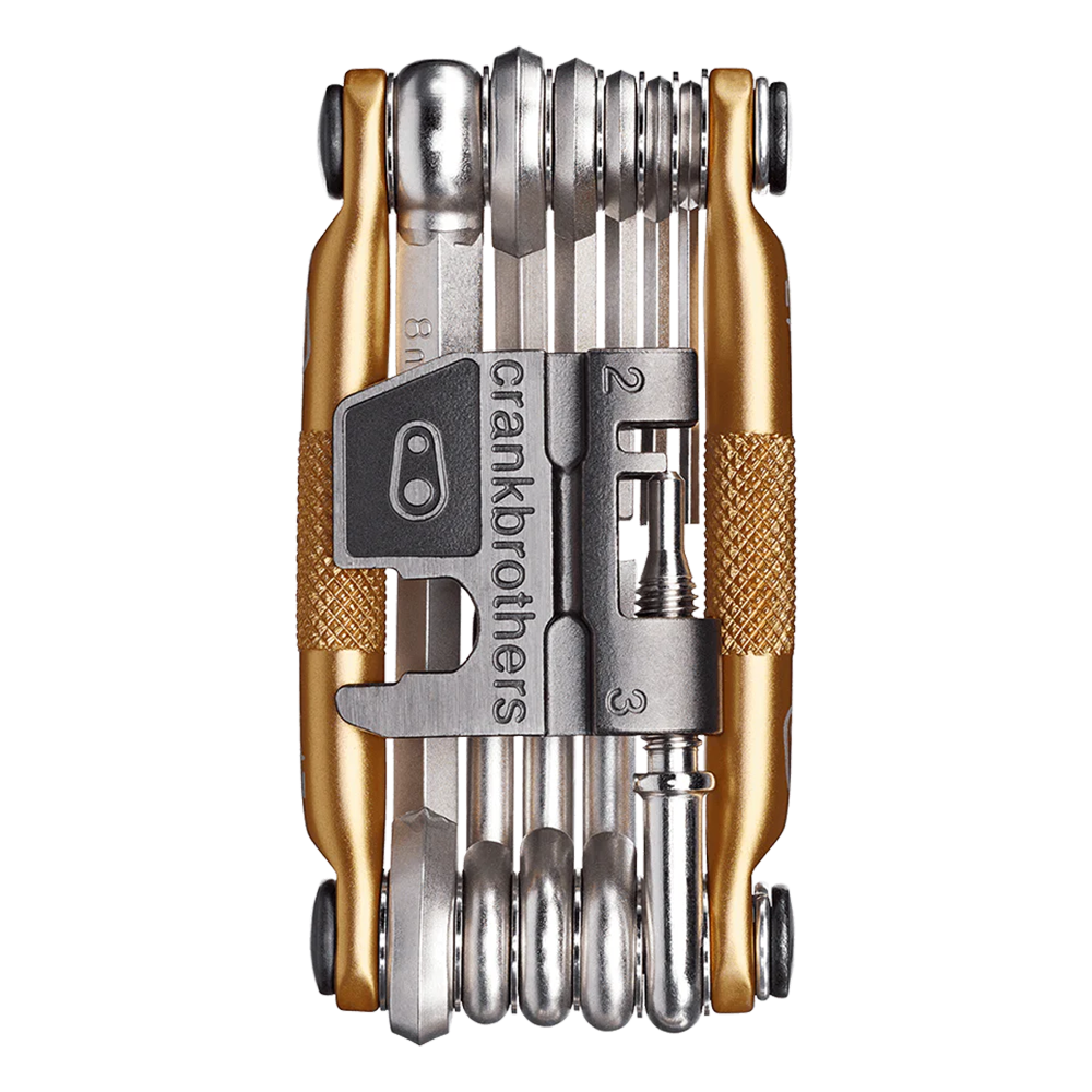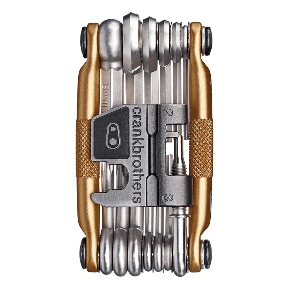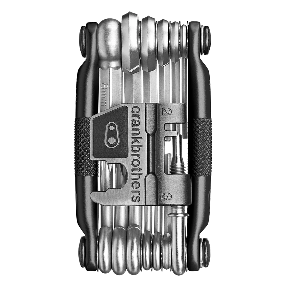 Мультитул Crankbrothers MULTI 20 Справжній компаньйон на дорозі. 20 багатофункціональних інструментів із високоміцної сталі, включаючи вбудований інструмент для заглушки шин. Заглушки для шин постачаються в комплекті з футляром для зберігання, який кріпиться безпосередньо до інструменту. У футлярі можна зручно зберігати ланки ланцюга. Комплектація: -