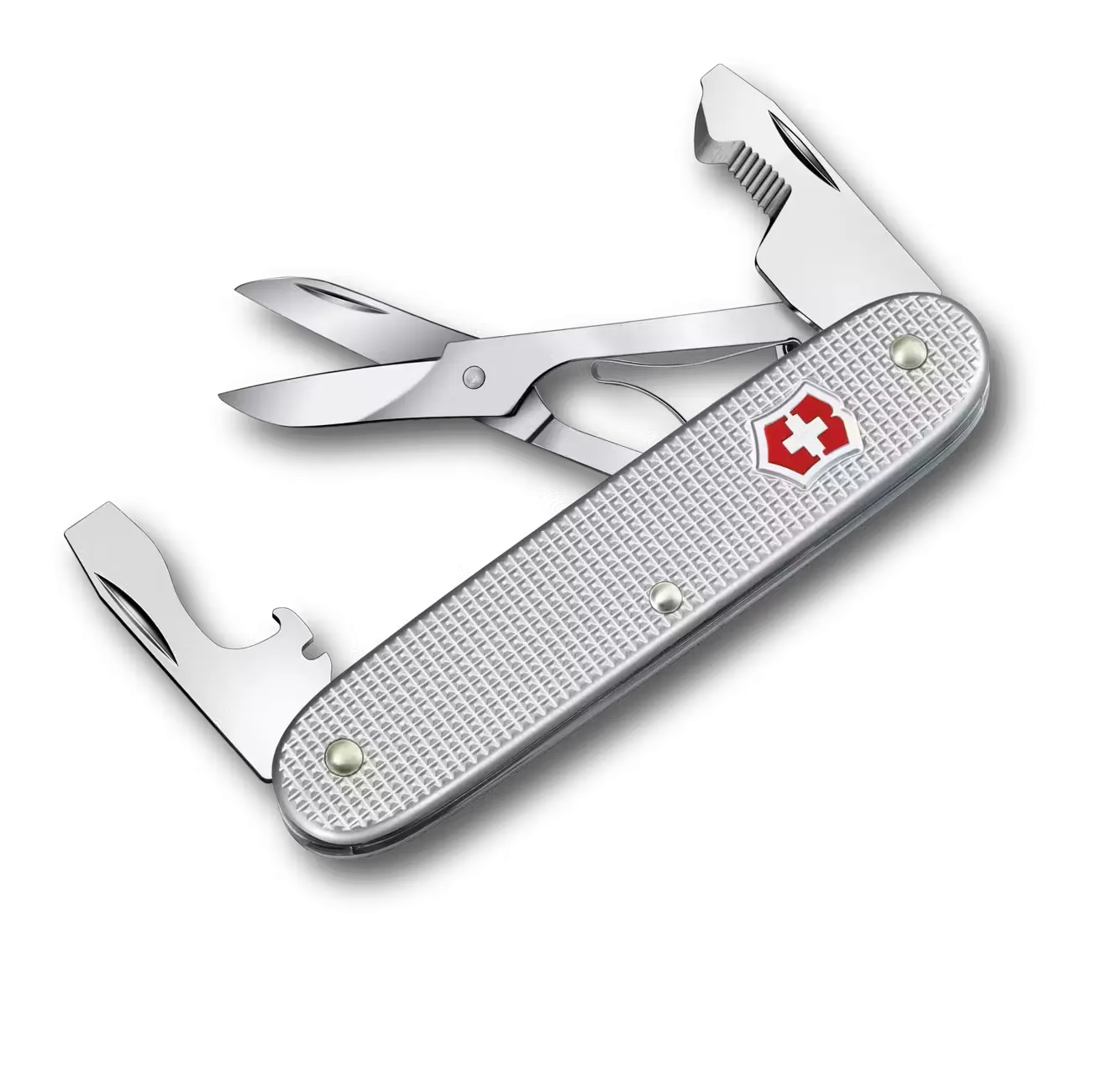 Кишеньковий складаний інструмент 93мм Victorinox COMPANION SLIM ALOX 6 функцій, рифлені сріблясті накладки, відкривачка для