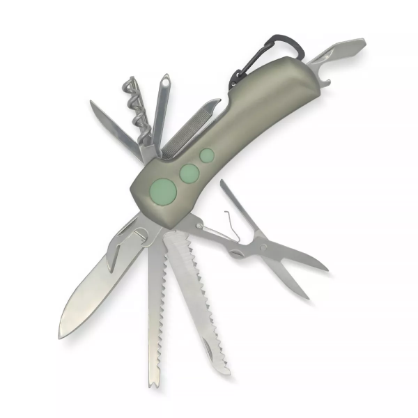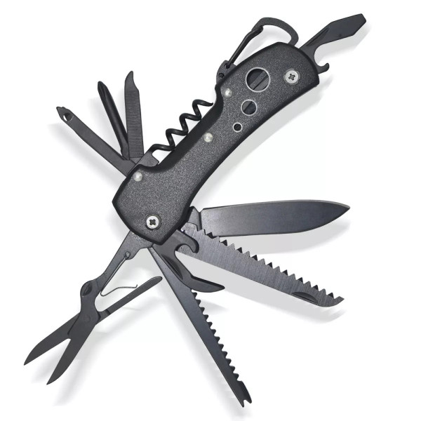 Склад/Плоскогубці, Кусачки, Пила, Ніж малий, Ніж великий, Відкривачка для пляшок, Викрутка під шліц "Phillips", Відкривачка для консервних банок, Пилка для нігтів, Викрутка хрестова, Викрутка плоска, Ніж із зубчатим лезом, Довгогубці, Подвійне лезо|Бренд/Werk|Форм