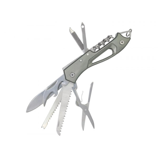 Склад/Пила, Ніж малий, Викрутка під шліц "Phillips", Відкривачка для консервних банок, Шило, Ножиці, Пилка для нігтів, Штопор, Викрутка плоска, Ніж із зубчатим лезом, Крюк для підвішування, Подвійне лезо|Бренд/Werk|Особ